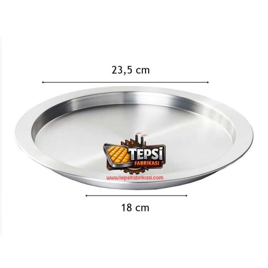 18 cm ölçüsündeki bu künefe tepsisi, tek porsiyon sınırını aşmadan paylaşım hissi oluşturan özel bir ölçüdür. Künefeciler için iki kişi arasında rahatça bölünebilen, fakat sunumda hâlâ kontrollü duran bir form sunar. Pişirme esnasında künefenin iç dokusu eşit ısınır, dilimleme sırasında taban yapısı dağılmaz. Servise geçildiğinde aynı ürünün künefe tabağı olarak kullanılması, masa üstünde düzenli ve net bir sunum sağlar.